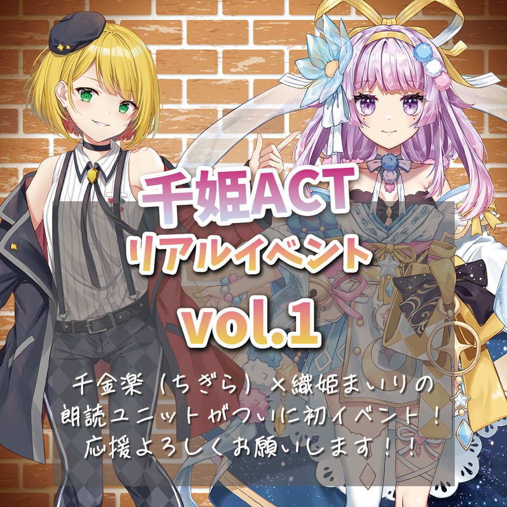 Vtuber「織姫まいり」と声優「千金楽(ちぎら)」による朗読デュオ【千姫ACT】がついに初イベント!