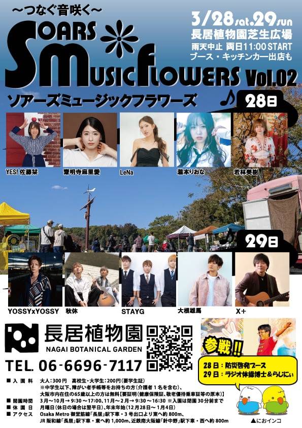 【フリーイベント】☆植物園の入園料、大人300円、学生200円必要です 「つなぐ音咲く〜SOARS MUSIC FLOWERS Vol,2〜」 at 長居公園-植物園広場- 開演11:00 終演15:30 STAYGの出演は①12:15~②14:45~