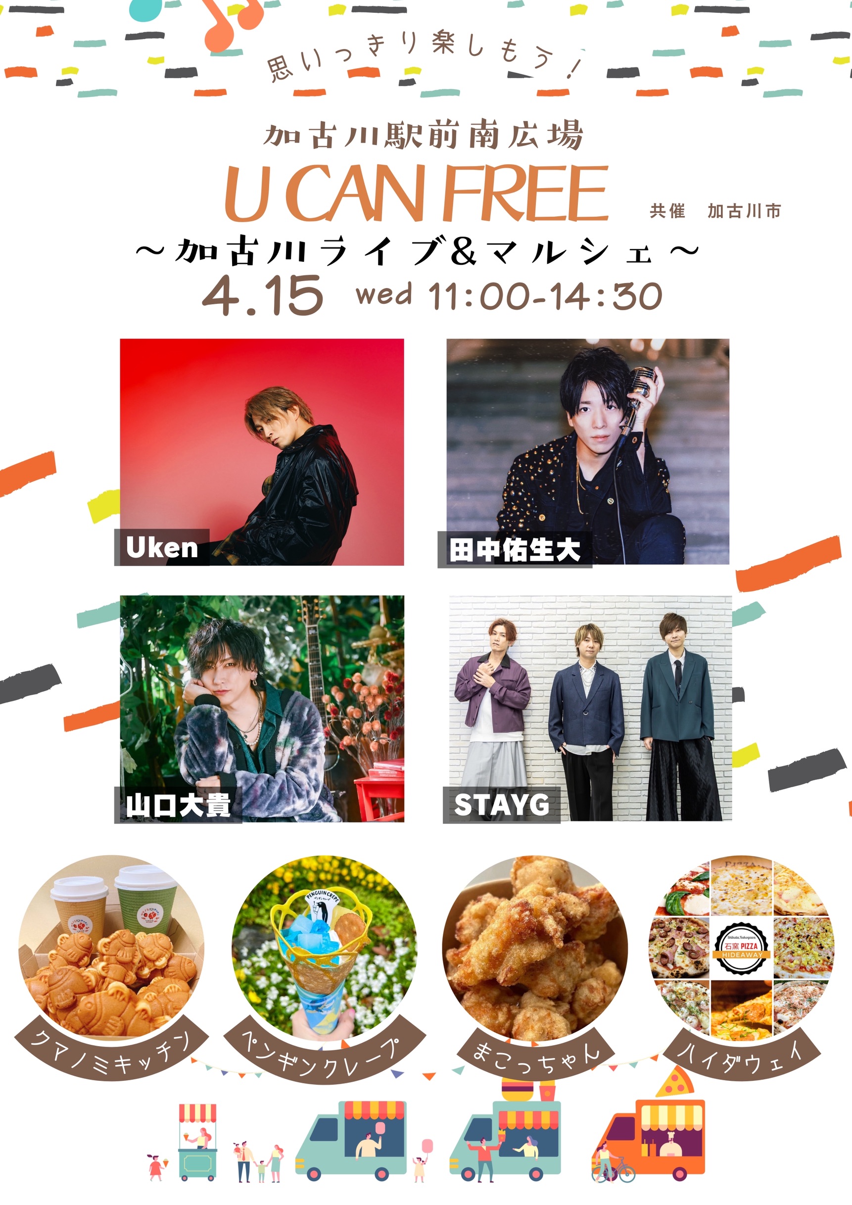 【フリーイベント】 U CAN FREE ~加古川ライブ & マルシェ~ at 加古川駅南広場 STAYGの出演は12:00〜