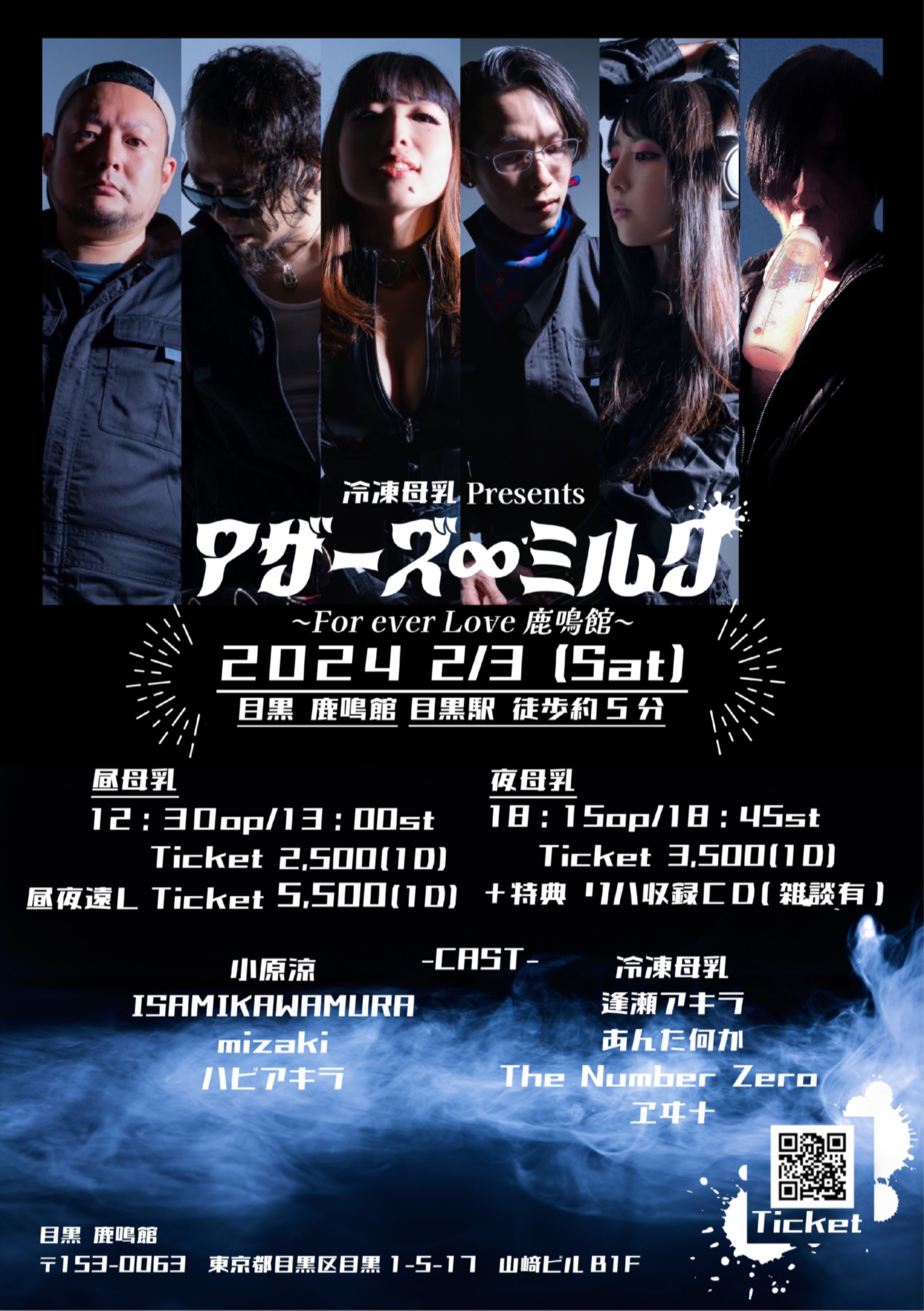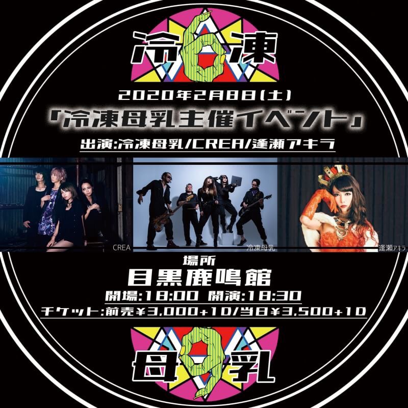 2020年2月8日(土) 「冷凍母乳主催イベント」 場所:目黒鹿鳴館 出演:冷凍母乳/CREA/逢瀬アキラ 開場:18:00 開演:18:30 チケット 前売¥3,000+1D 当日¥3,500+1D