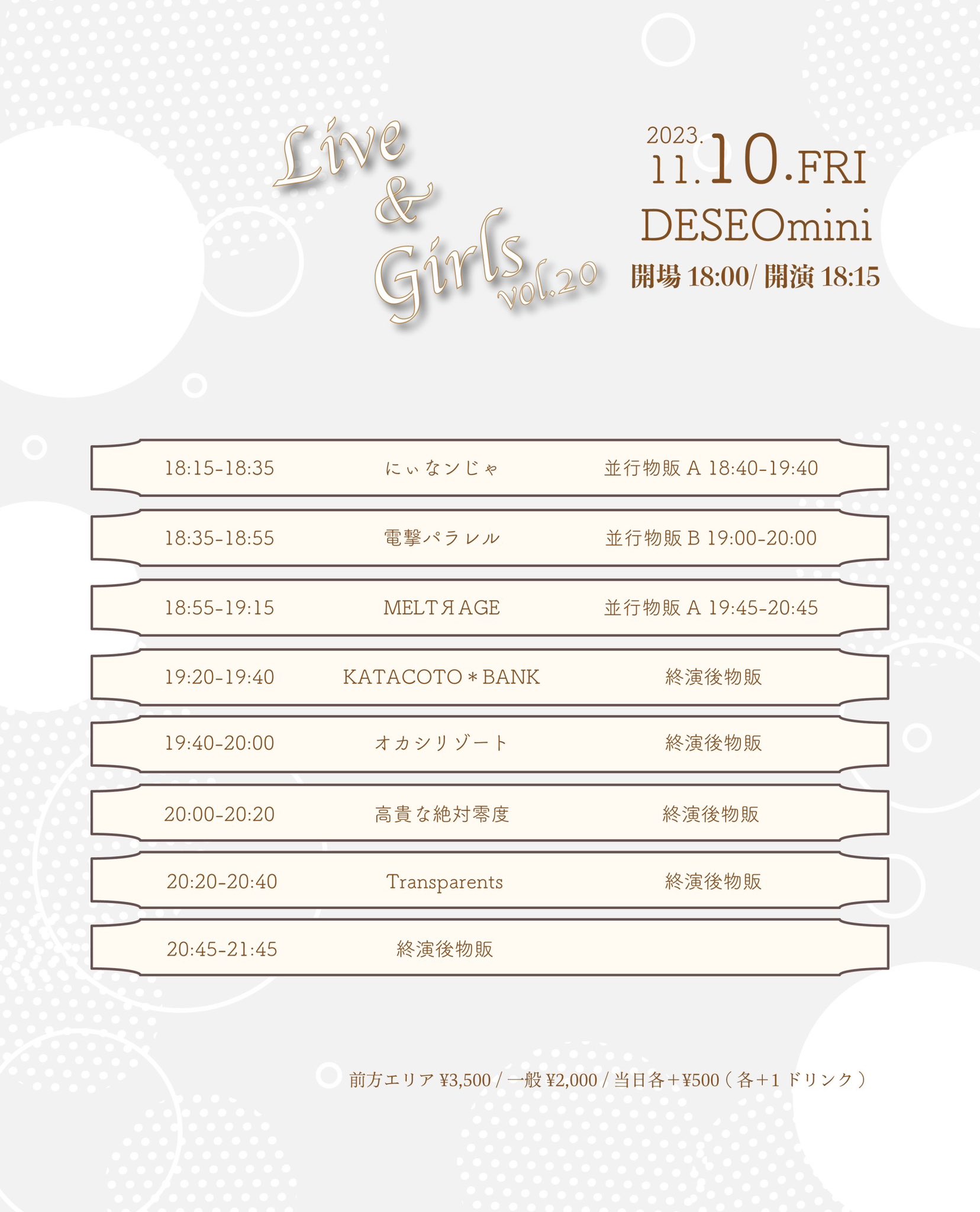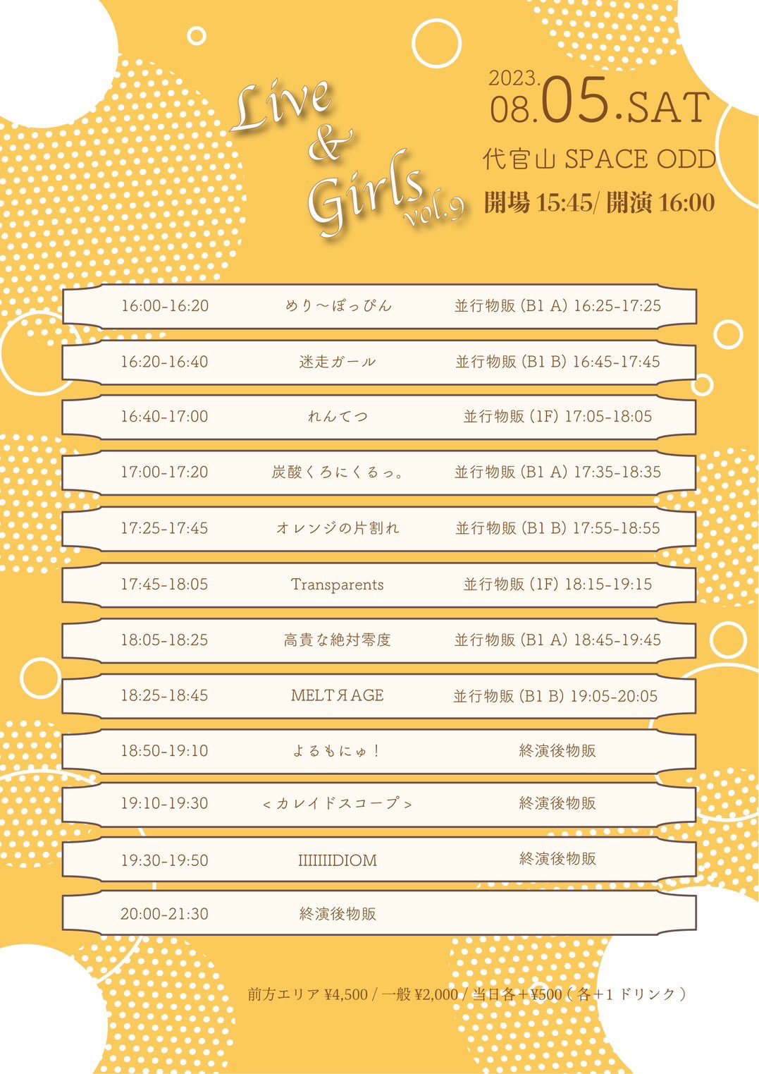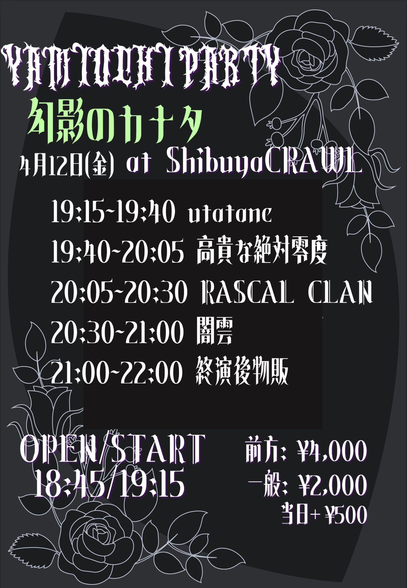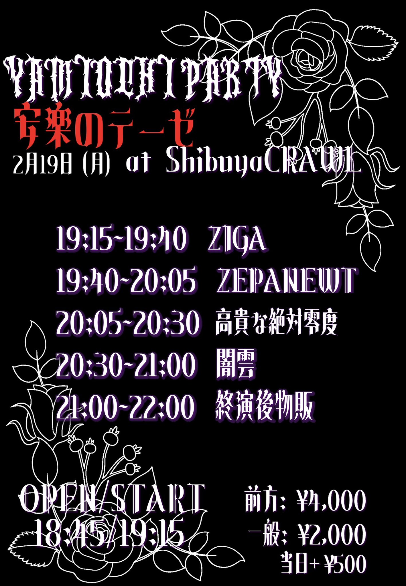 ■前売り ¥2,000 / 当日 ¥2,500 (別途1D)