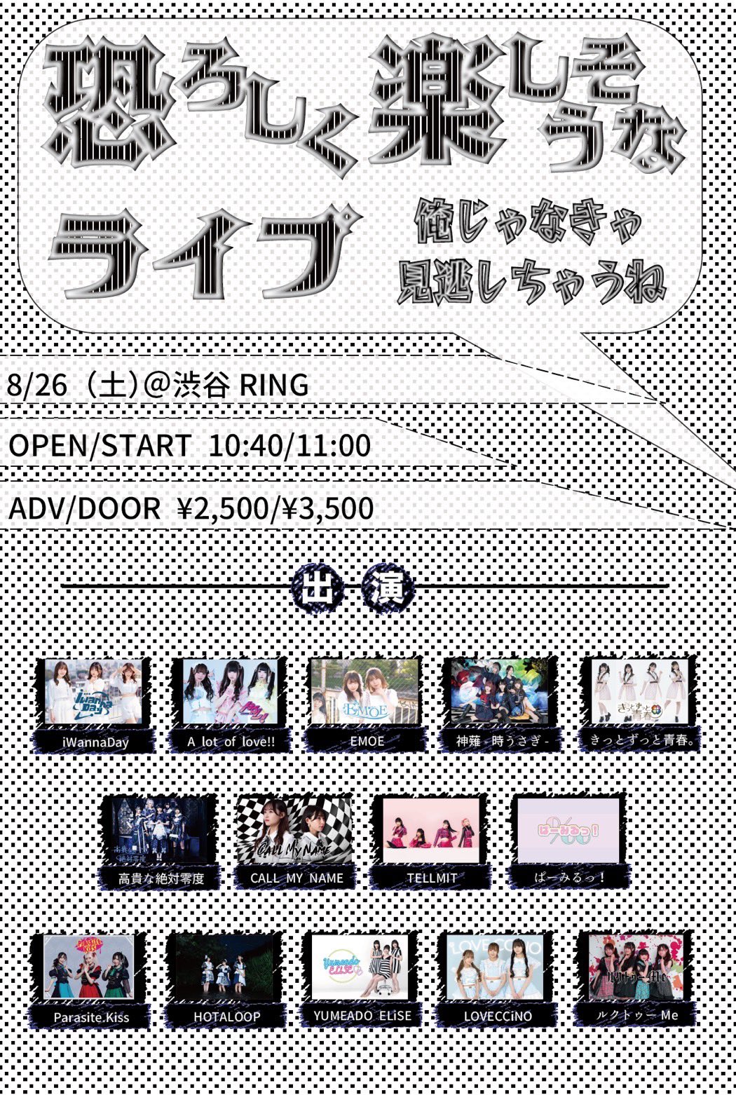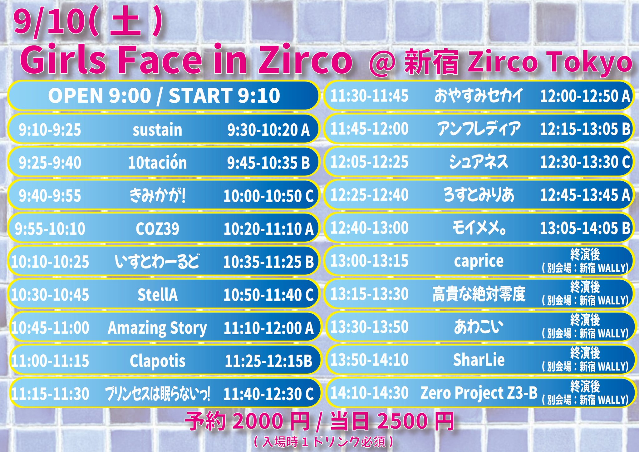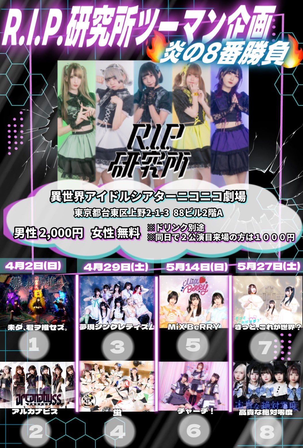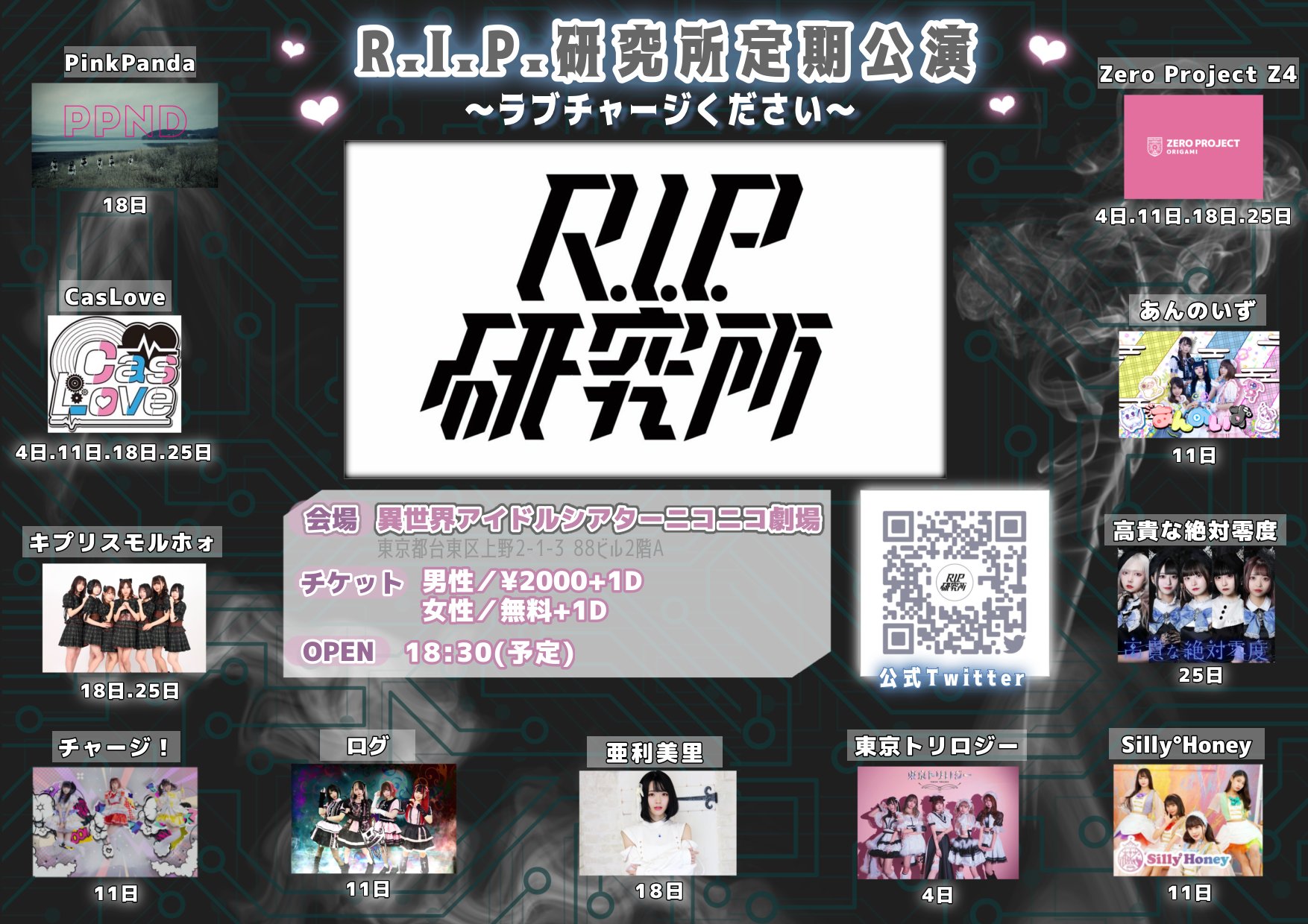■前売り ¥2,000 / 当日 ¥2,500 (別途1D)