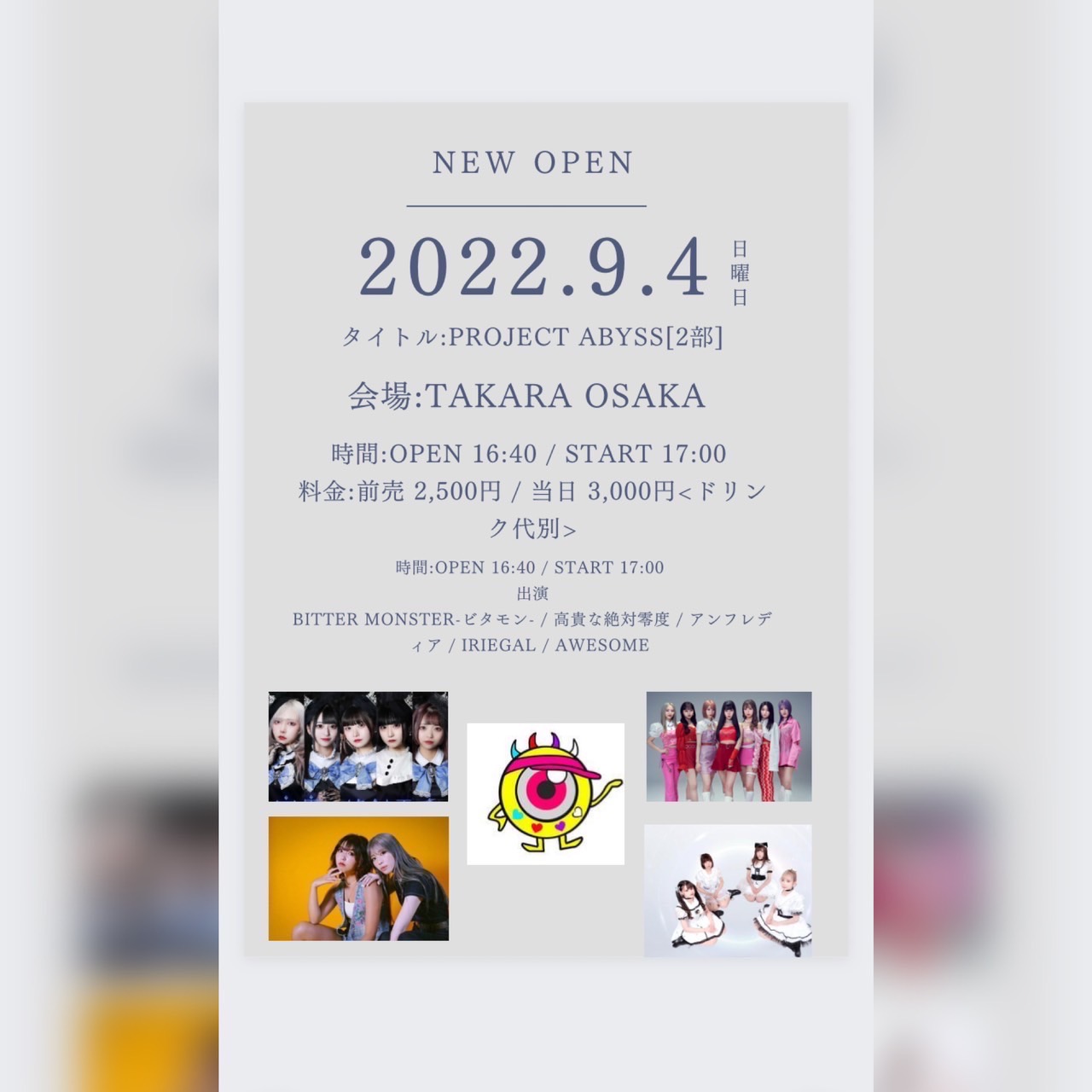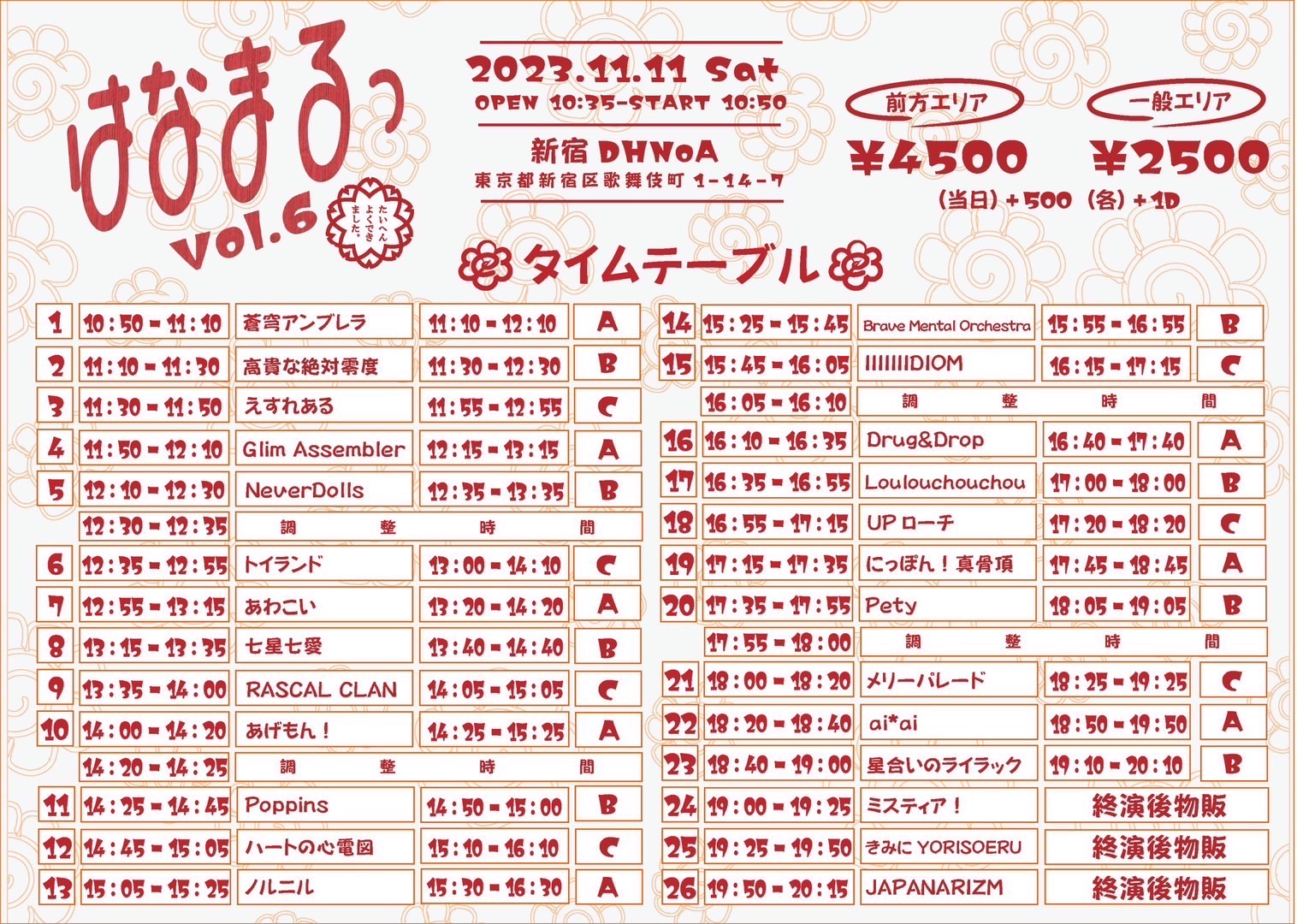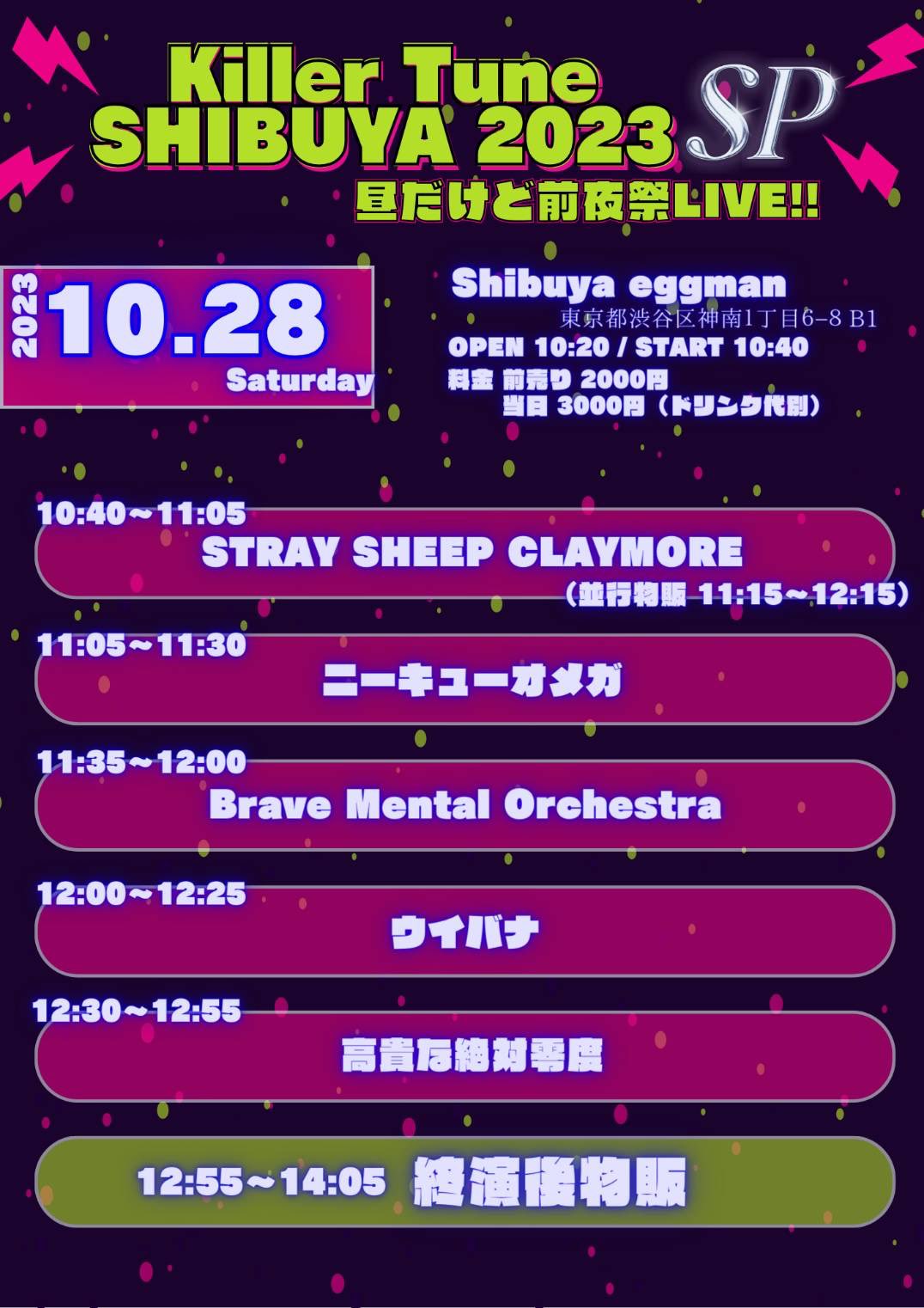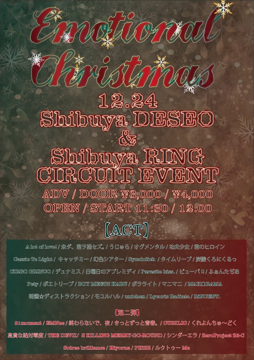 ■前売り ¥2,000 / 当日 ¥2,500 (別途1D)