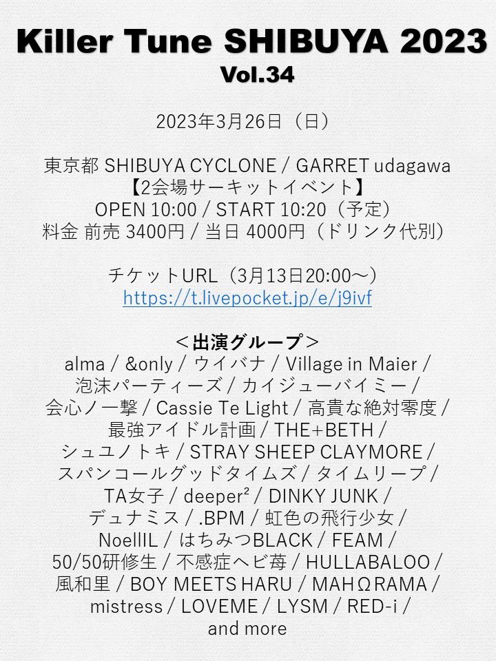 ライブ予定 in 新宿 ※5/11時点未確定