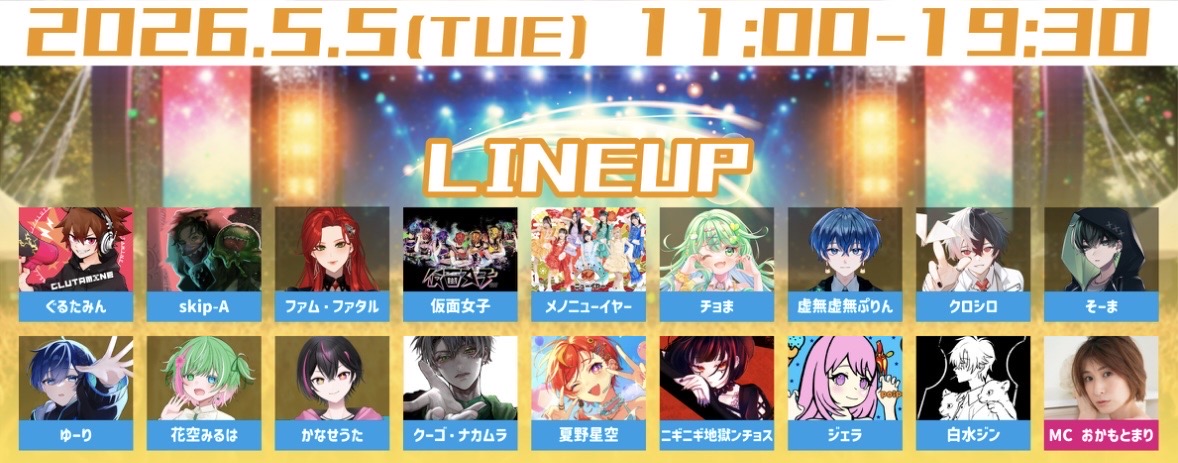 個性豊かなVtuber・歌い手たちによるライブパフォーマンスと、 主催者が自信を持ってオススメするフードが楽しめる、 1日限定の特別なイベントです。