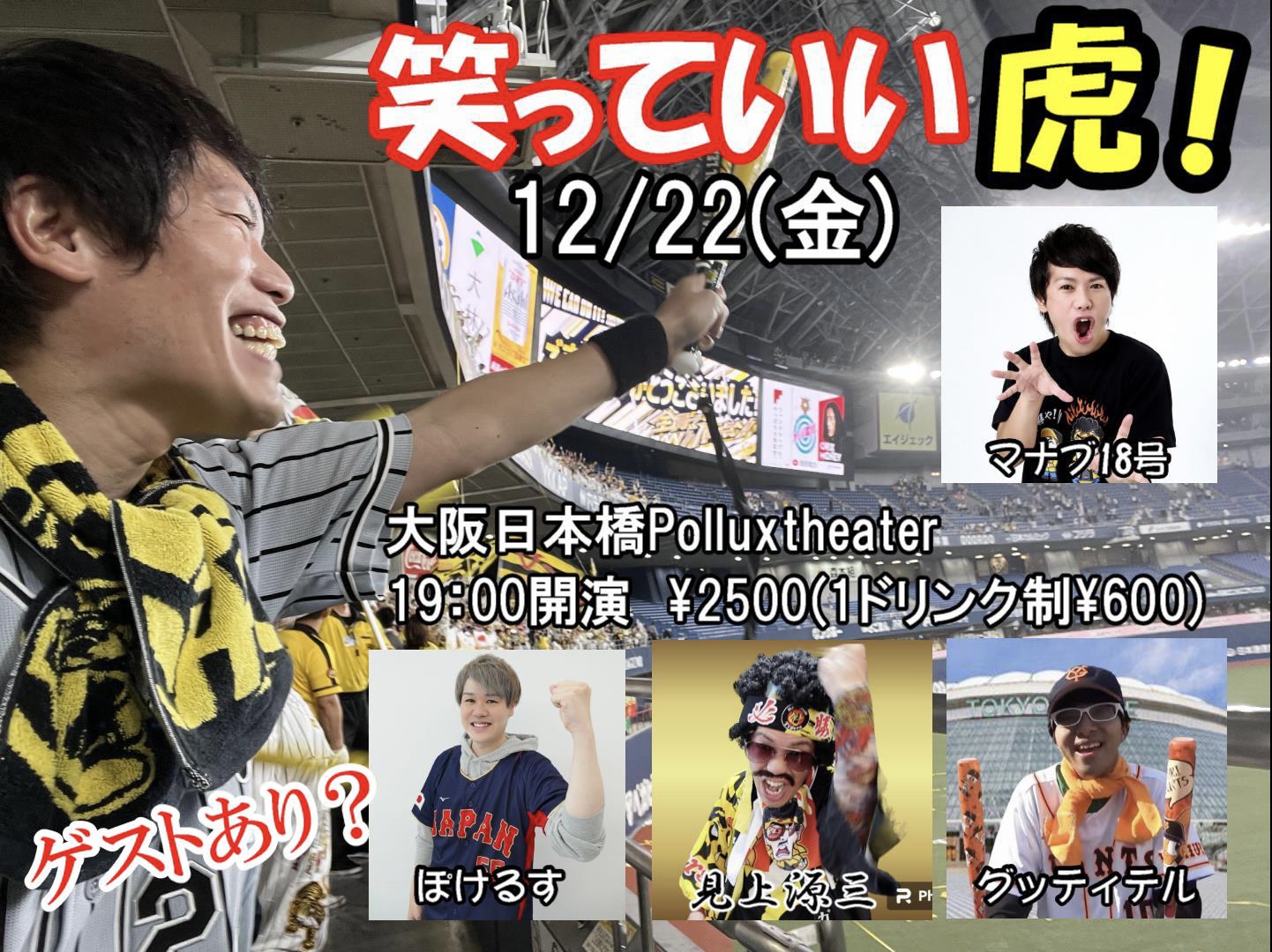㊗️阪神タイガース アレのアレ!🎉 ということで、トークあり!漫才あり!バラエティコーナーあり!の超楽しいお笑いイベント『笑っていい虎!』を開催します!絶対満足させます!阪神ファン集まれ!! 最高の一年をみんなで笑って締めくくりましょう💪